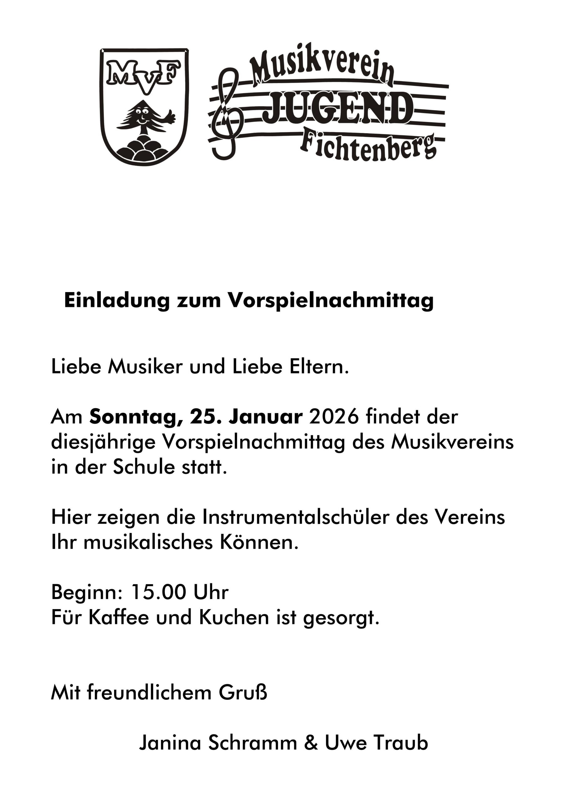 Vorspielnachmittag Sonntag 25. Januar 15.00 Uhr